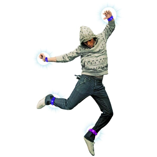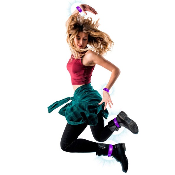Diese Armbänder können mit deinem Smartphone verbunden werden, wo du mit der SoundMoovz-App deine eigenen Klänge einstellen kannst, um den gewünschten Effekt zu erzielen: Percussion, elektronische Musik oder sogar Lichtschwertklänge! Du kannst zwei weitere Armbänder hinzufügen, um deine Arme und Beine auszustatten, damit du wirklich komplette Choreographien erstellen kannst!