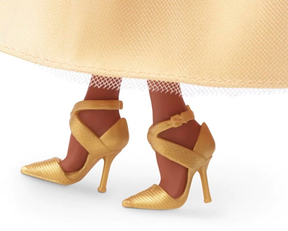 Für diese 35. Ausgabe der legendären „Holyday“-Serie trägt Barbie ein Satinkleid mit champagnerfarbenen Highlights, das durch eine glitzernde Krinoline aus Tüll abgerundet wird. Der transparente, plissierte Umhang mit elfenbeinfarbener Schleife verleiht dem Ganzen einen dramatischen und raffinierten Touch. Goldene Ohrringe und ein geformtes Armband runden diesen festlichen Look mit Finesse ab. Für ihre Haare wählt Barbie eine zeitlose, anmutige, Wavy-Föhnfrisur. Jedes Detail wurde sorgfältig durchdacht, um perfekte Harmonie zu schaffen und diese Sonderedition aufzuwerten. Heben Sie den Saum ihres Kleides an und enthüllen Sie ein Paar goldene Stilettos. Oder schauen Sie sich ihre kleinen Finger an und bewundern Sie ihren Nagellack!